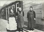 Rechts mevr. Van Elburg voor haar woning (kolenboer Van Elburg).